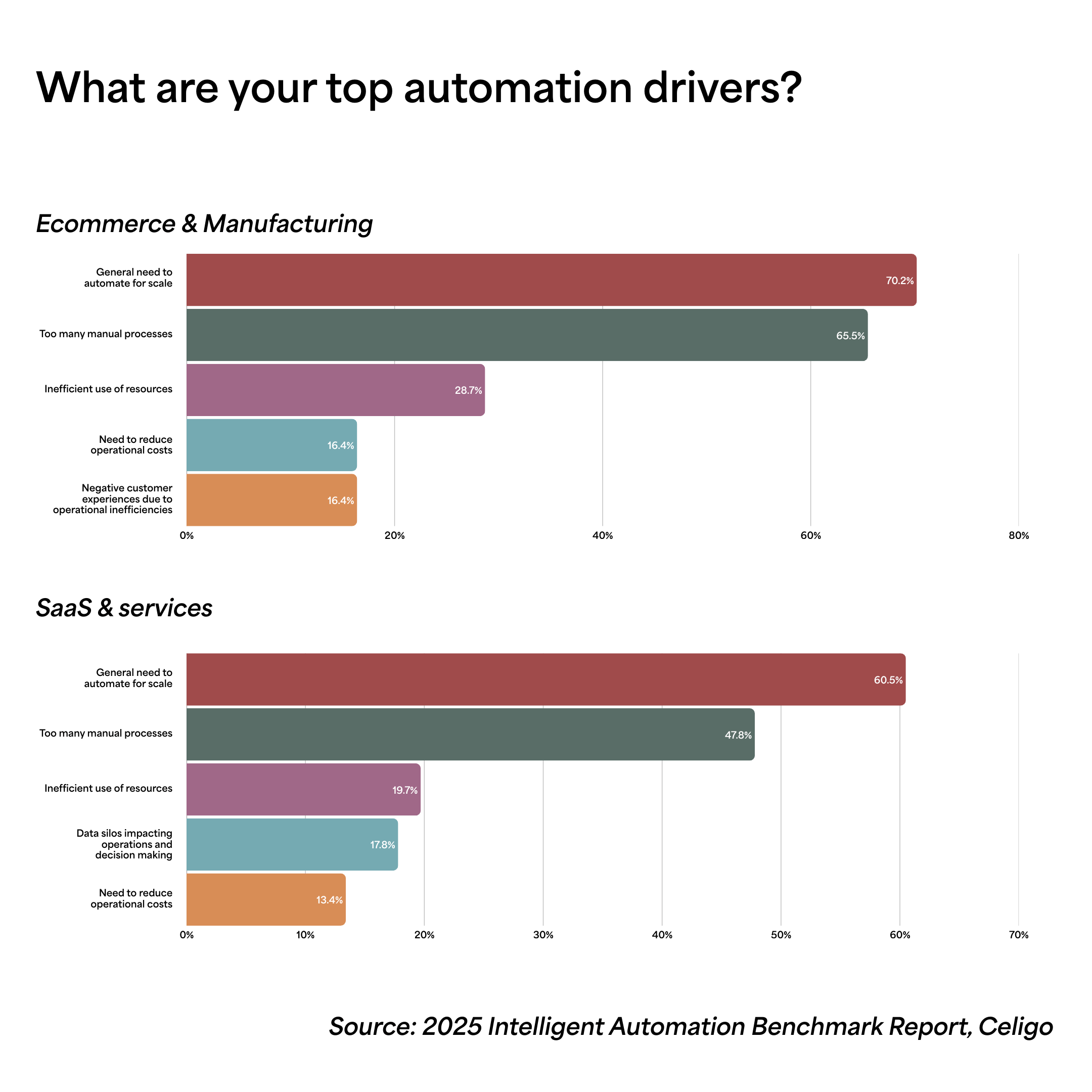 Across ecommerce, SaaS, manufacturing, and services, we saw leaders treat scaling automation as a priority.