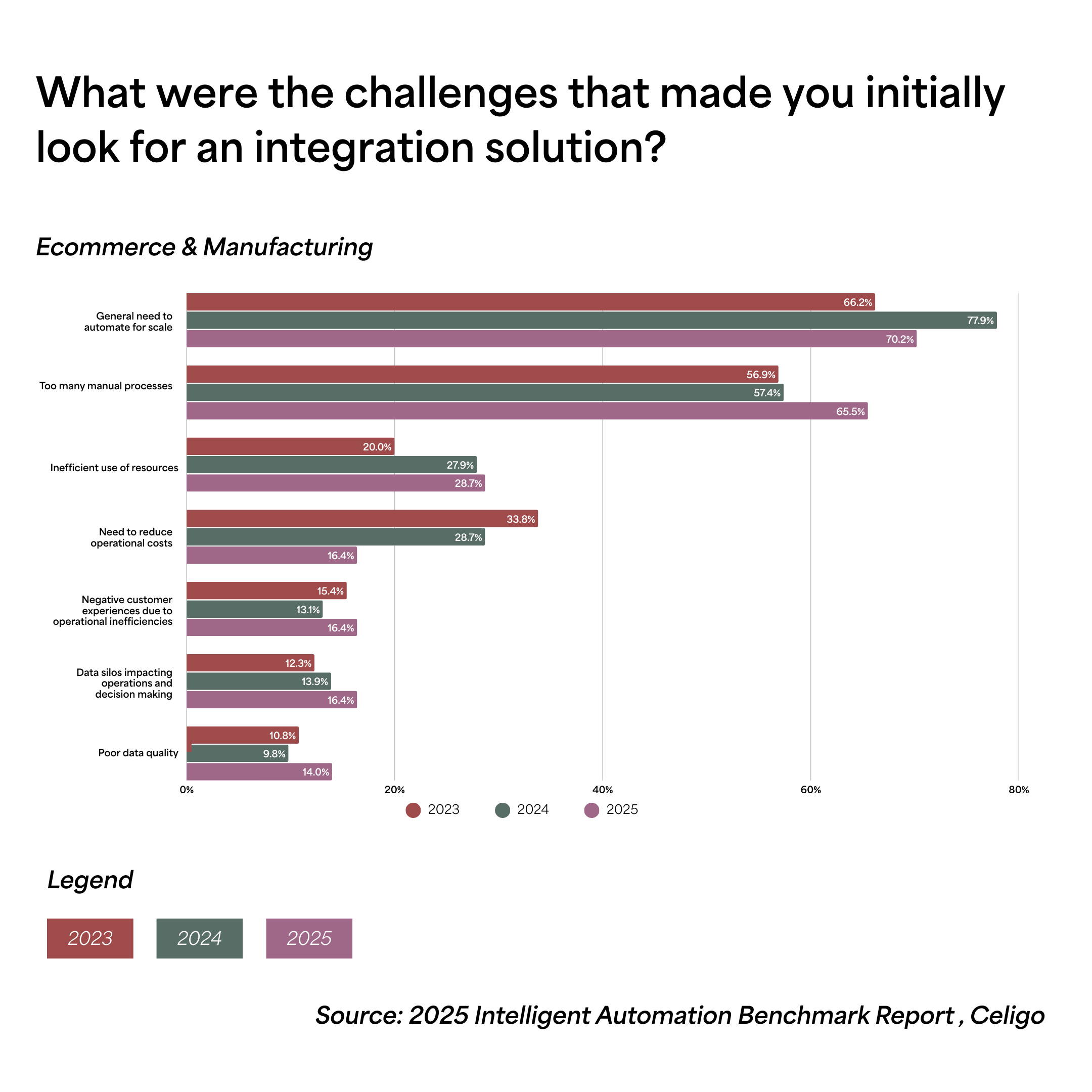 - “Too many manual processes” increased from 56.9% to 65.5% over three years
