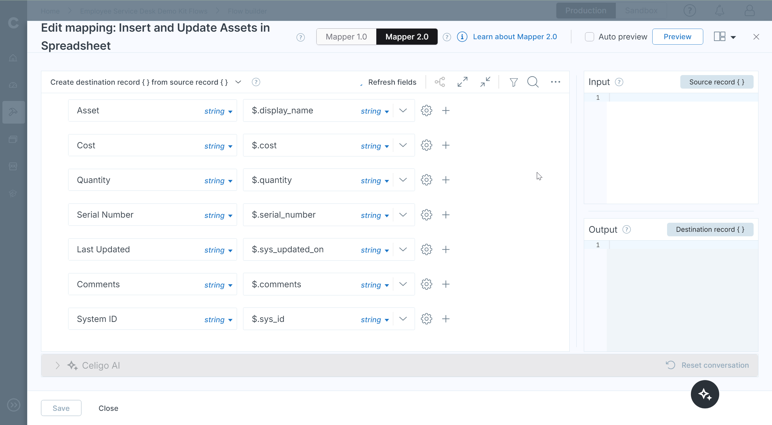 Here, we’ll examine a flow in Celigo’s integration platform that automates the synchronization of tech asset data from your systems to a centralized Google Sheets spreadsheet. This integration creates visibility into internal tech inventory, improves asset tracking, and streamlines the asset provisioning process.