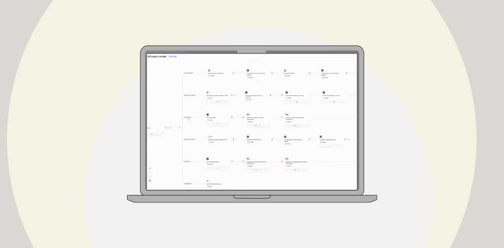 The finance team automates draft responses for emails in the AR inquiry Gmail inbox. This agentic flow uses AI to analyze emails and categorize them among common cases (estimated to be 30-40% of inquiries).