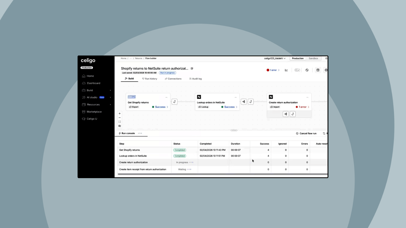 Returns are a lifecycle, not a single event: request, approval, receipt, refund. This release adds dedicated flows that sync Shopify returns into NetSuite as Return Authorizations and keep status aligned across both systems.